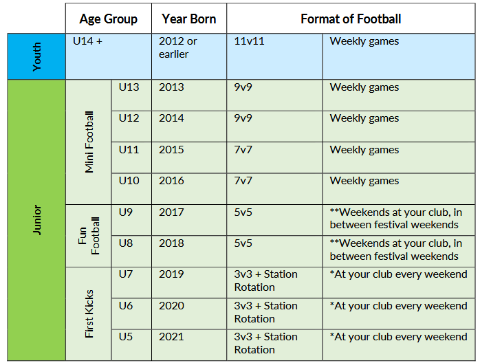 Research shows that playing smaller formats of the game for longer significantly increases involvement and touches on the ball for players, increasing enjoyment, accelerating skill development, and better preparing participants for the transition to 11 vs 11 football.